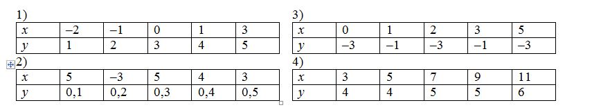 Зависимость y от x задана таблицей. Какие из указанных зависимостей не являются функциональными?