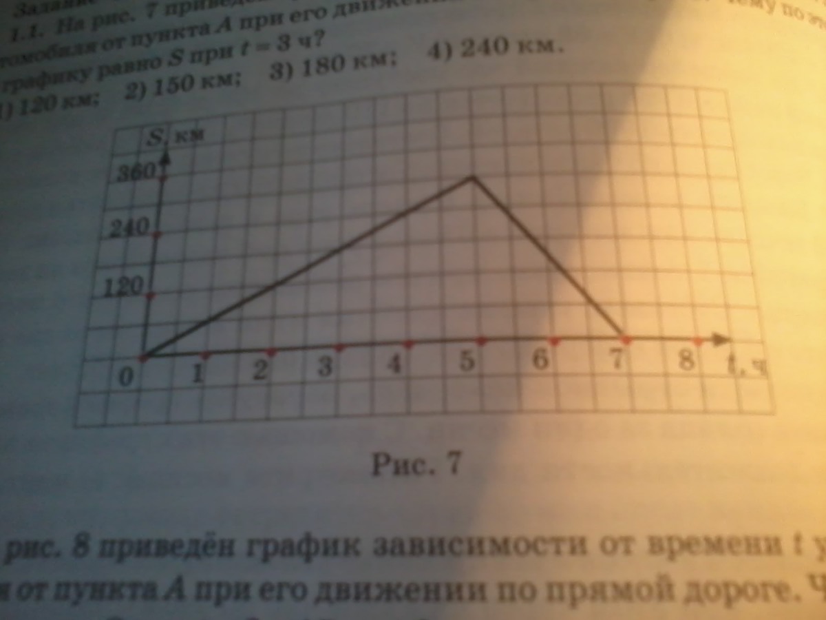 Определите по графику на рисунке 7, в какие моменты времени t автомобиль находился на расстоянии 150 км от пункта А.