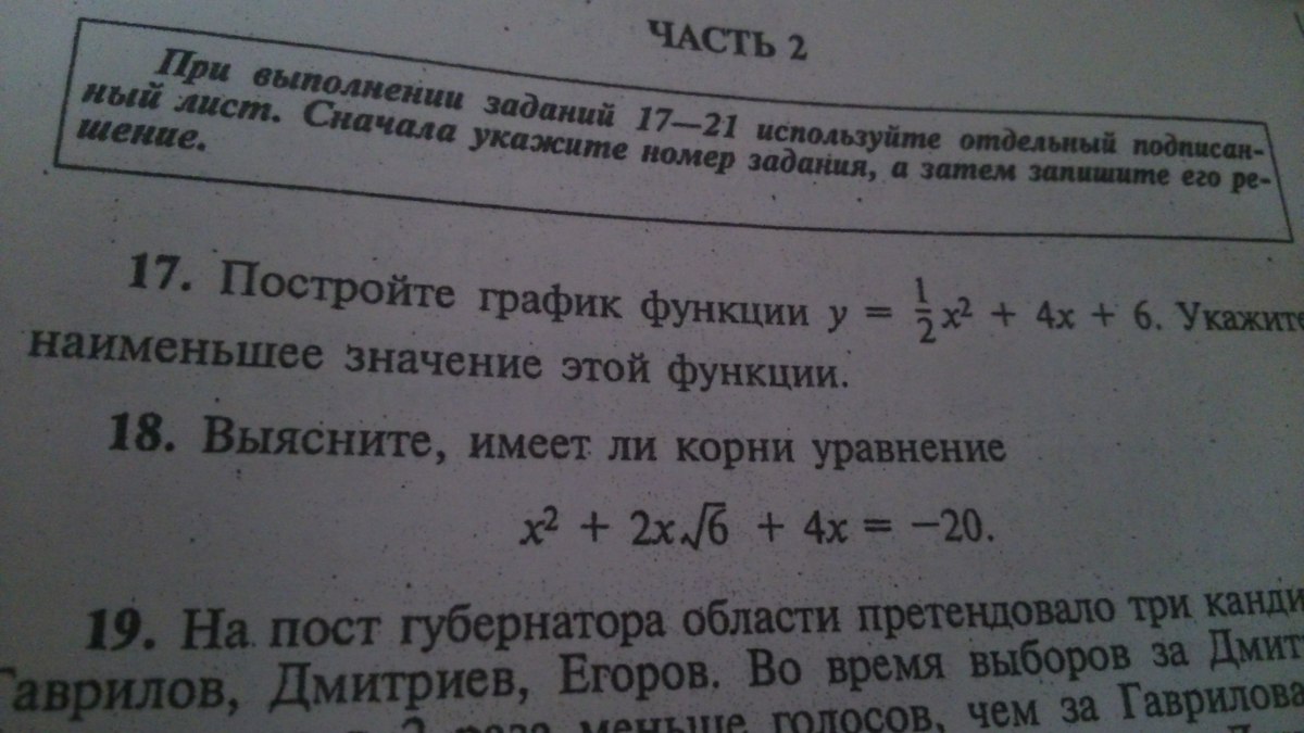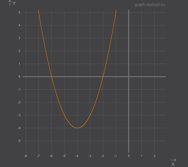 Умножь функцию на 2, и построй по алгоритму написанному в учебнике. Эта функция положительная, ветви вверх значит она имеет наименьшее значение, которое высчитавается по формуле -b/2a, т.е -8/2=-4 наименьшее этой функции