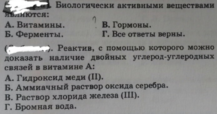1) Биологически активными веществами являются и витамины, и гормоны.