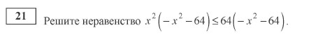 x^2(-x^2-64) leq 64(-x^2-64)\\x^2(-x^2-64)-64(-x^2-64) leq 0\\(-x^2-64)(x^2-64) leq 0\\-(x^2+64)(x^2-64) leq 0; |cdot (-1)\\(x^2+64)(x^2-64) geq 0\\x^2+64>0; pri; xin R; ; to ; ; x^2-64 geq 0\\(x-8)(x+8) geq 0\\+ + + + +(-8)- - - - -(8)+ + + + + +\\xin (-infty,-8]U[8,+infty)