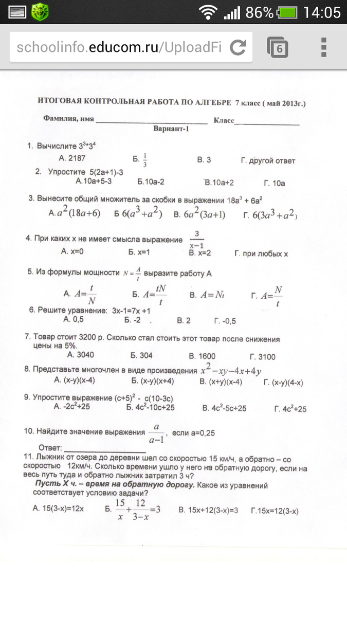 Алгебра 7 класс! Решите, пожалуйста, срочно! Нужны не только варианты ответов, но и решения!!!