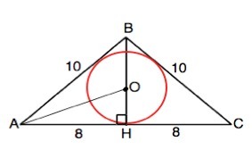 Боковые стороны равнобедренного треугольника равны 10, основание равно 16. Найдите радиус вписанной окружности. Через свойство биссектрисы.