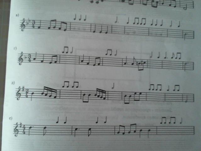 я добавила к заданию фотку, там надо досочинить мелодии, используя данный ритм. пожалуйста, помоги))