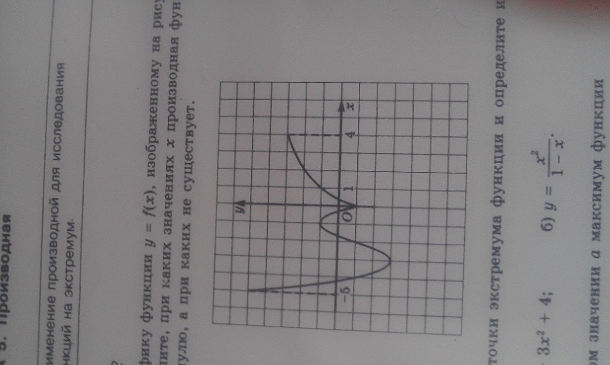 По графику функции y=f(x), изображённому на рисунке, определите, при каких значениях х производная функции равна нулю, а при каких не существует.