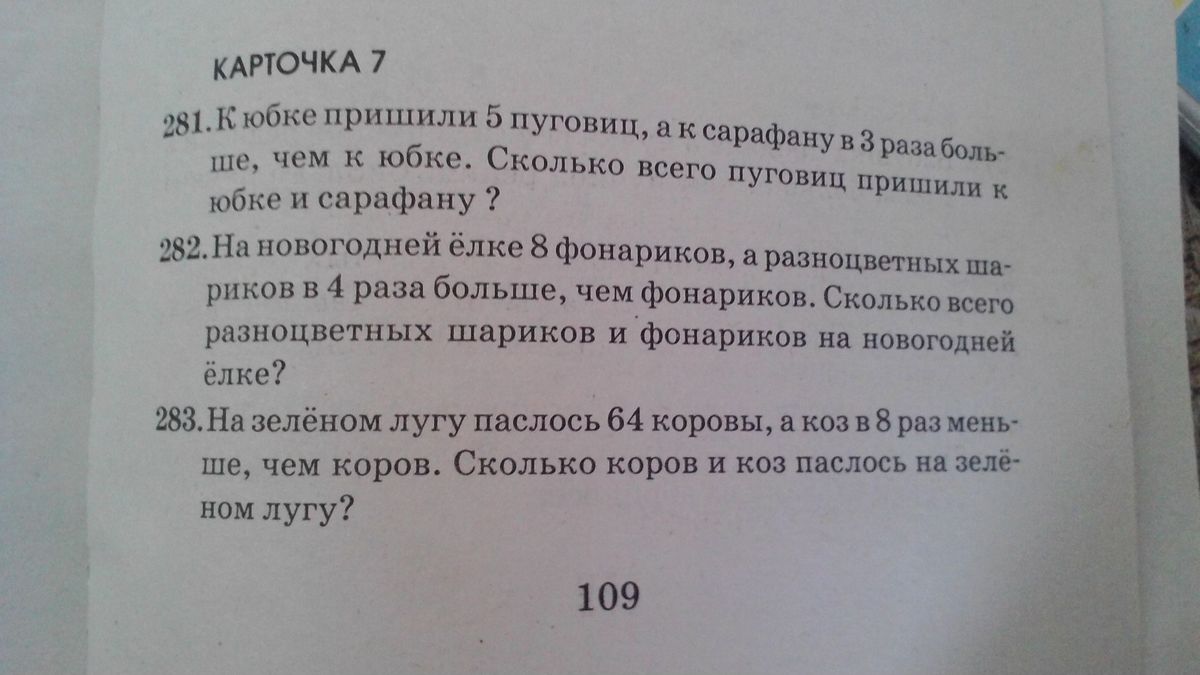 1 задача 5*3= 15 пуговиц на сарафане и 15 + 5=20 пуговиц всего