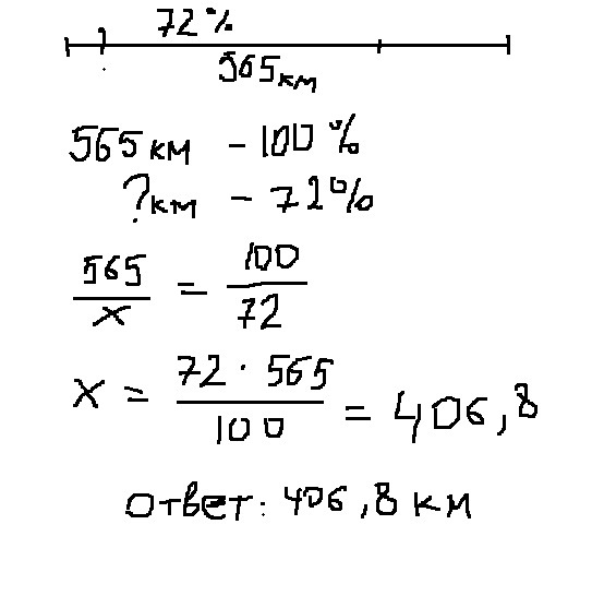 Ответ : 565км*0,72=406,8 км