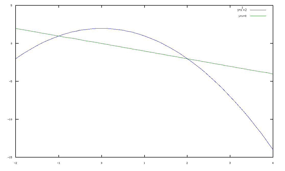 графически: строишь графики функций y=-x и y=2-x^2 точки пересечения и будут являться решением
