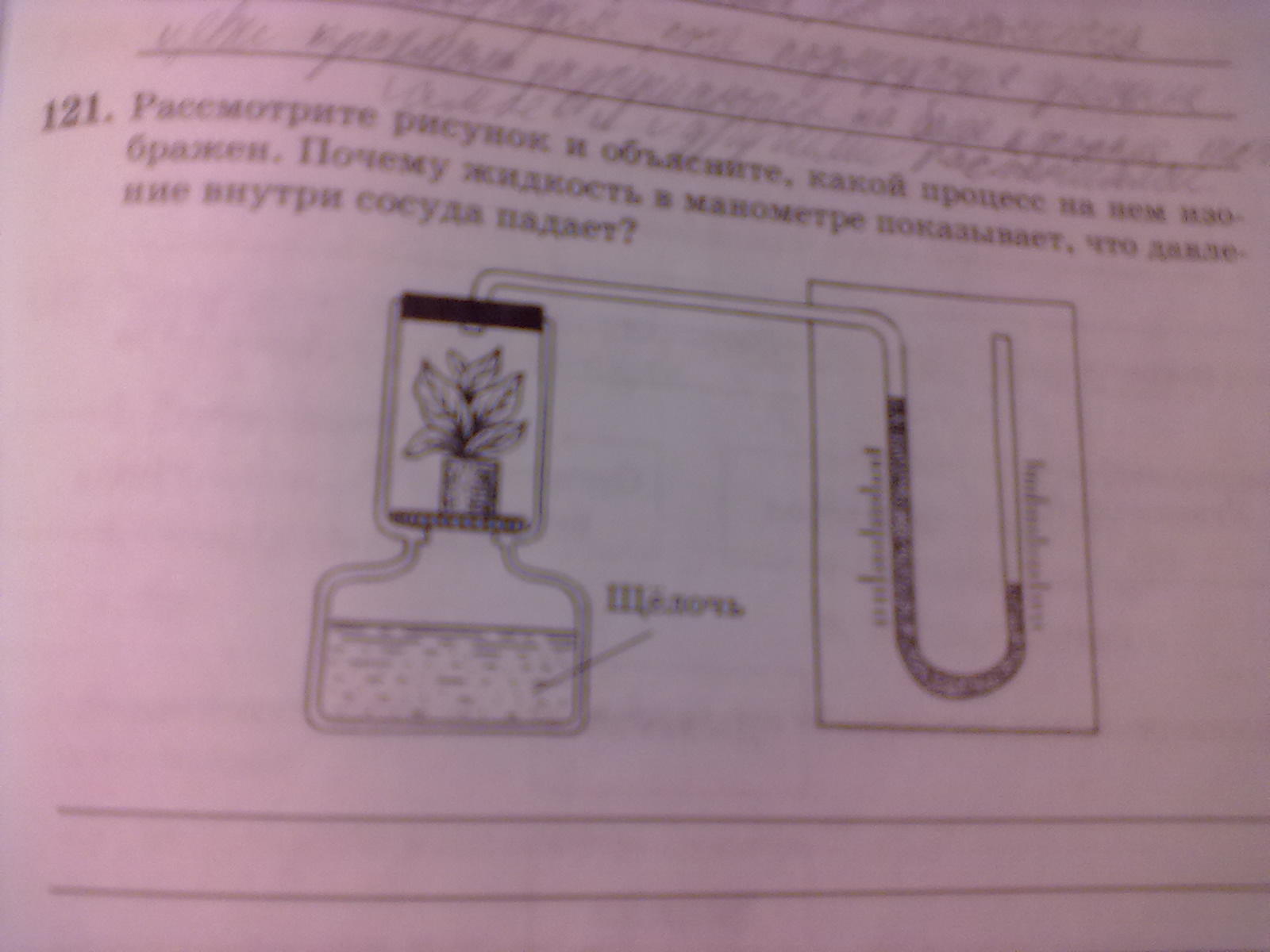 Расмотрите рисунок и объясните, какой процесс на нем изображен. Почему житкость в манометре показывает, что давление внутри сосуда падает?