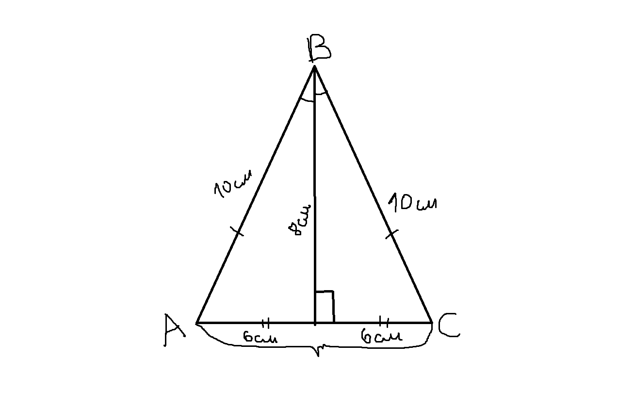 найдите площадь ровнобедренного треугольника с боковой стороной 10 см,если высота,проведенная к его основанию,ровна 8 см..