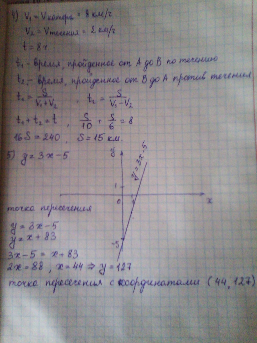 Постройте график функции y=3x-5. Найдите координаты точки пересечения этого графика с прямой y=x+83.