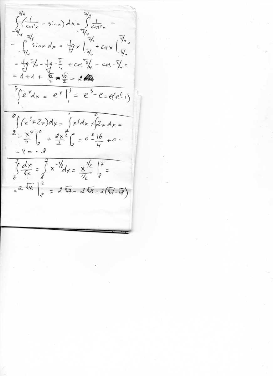 Все функции табличные, интегралы берущиеся, никакого решения не требуется, смотри в таблицу, находи первообразную, подставляй пределы.