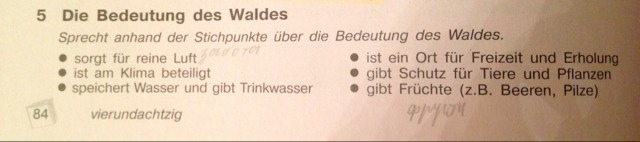Wir gehen gern im Wald spazieren.Das ist ein wunderschöner Ort für unsere Freizeit und Erholung.Der Wald gibt für Tiere und Pflanzen Schutz.Er gibt uns außerdem Früchte,Beeren und Pilze.Haltet die Wälder in Sauberkeit.