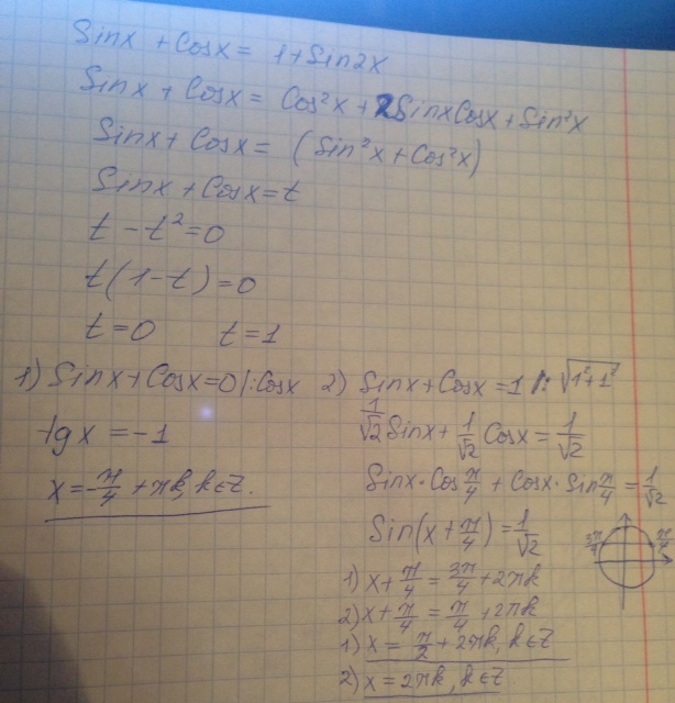 sinx+cosx=sin²x+cos²x+2sinx*cosx