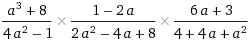 frac{a^{3}+8}{4a^{2}-1} * frac{1-2a}{2a^{2}-4a+8} * frac{6a+3}{4+4a+a^{2}} = \