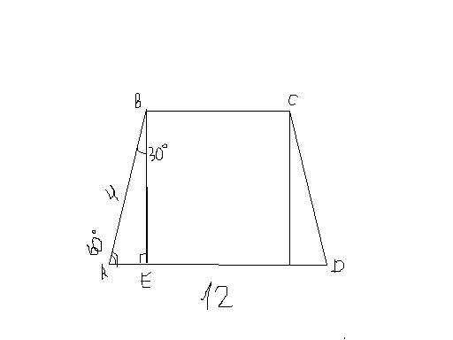 5.угол ВАЕ =60 град, значит угол АВЕ=30град.в прямоуг треуг против угола 30 градусов лежит сторона равная половине гипотенузы, значит половине боковой стороны с длиной 4 , то есть АЕ=2, СООТВЕТСТВЕННО ЧТОБ ПОЛУЧИЛСЯ ВЕРХ ТРАПЕЦИИ ,Надо из низа (12) вычесть два таких симметричных отрезка 12-2-2=8.