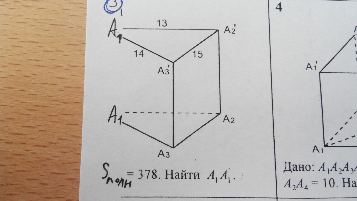 периметр треугольника=13+14+15=42, полупериметр (р)=42/2=21, площадь основания (треугольника)=корень(р*(р-сторона1)*(р-сторона2)*(р-сторона3))=корень(21*8*7*6)=84, площадь боковая=площадь полная-2*площадь основания=378-2*84=210, площадь боковая=периметр*высоту, 210=42*А1А1, А1А1=210/42=5
