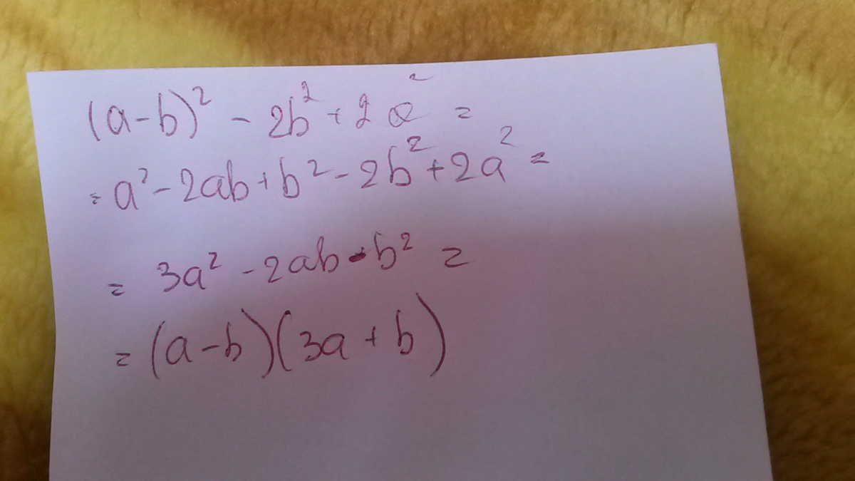 Разложите многочлен (a-b)² - 2b²+ 2a² на множители!!! заранее спасибо