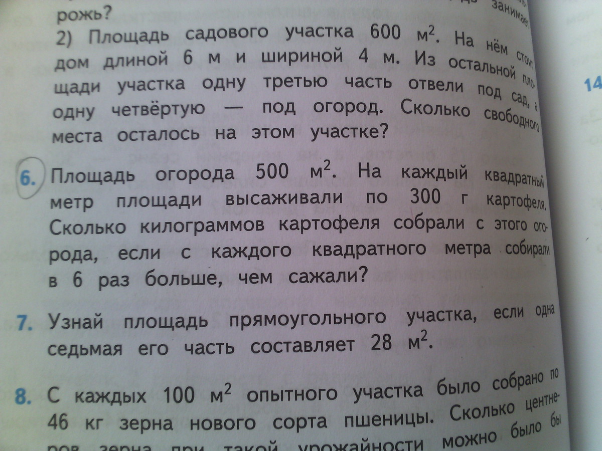 1)300*6=1800(гр) картофеля собирали с 1 кв.м