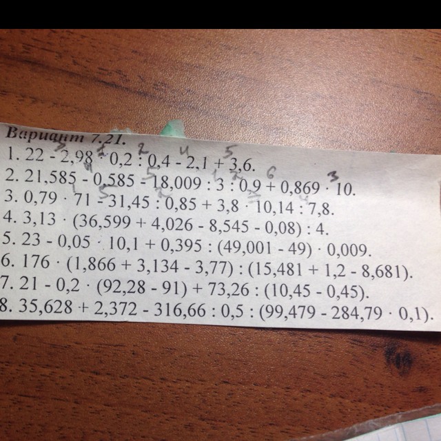 2. 21,585 - 0,585 - 18,009 : 3 : 0,9 +0,869 *10 = 23,02