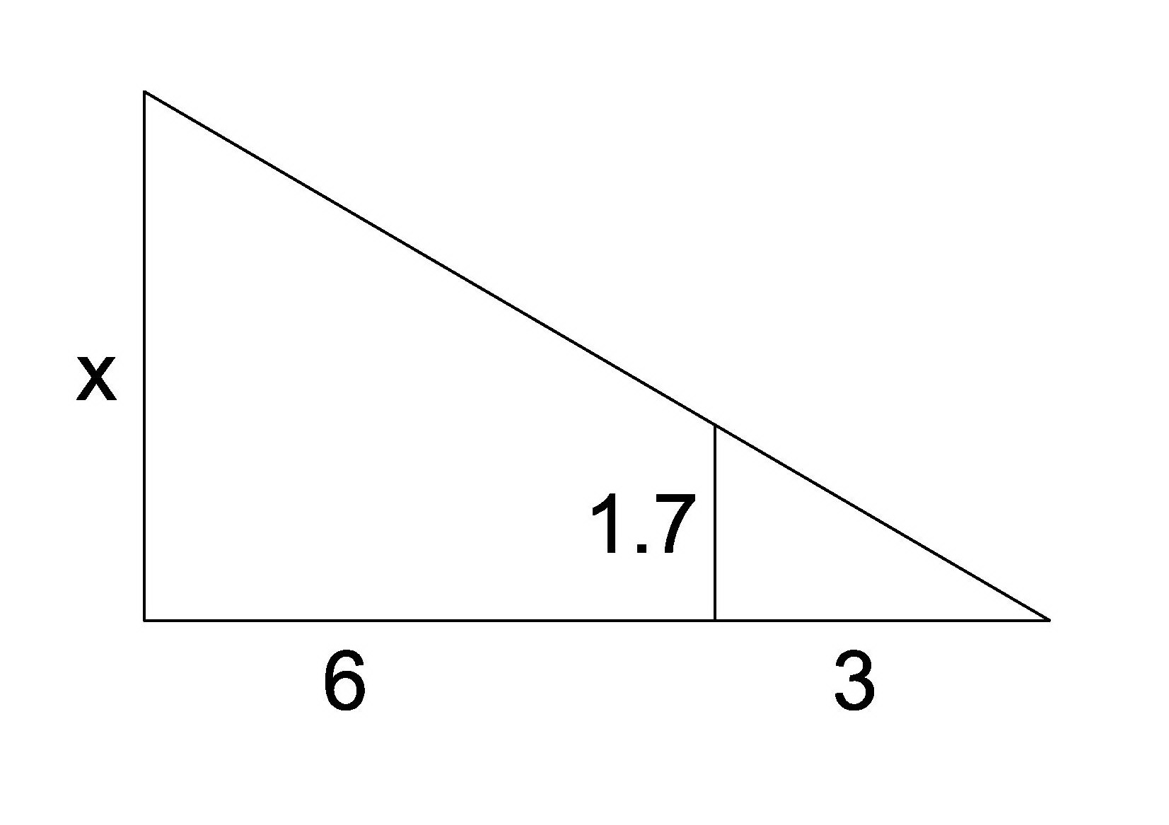 Человек ростом 1,7 метров стоит на расстоянии 6 шагов от столба, на котором висит фонарь. Тень человека равна трем шагам. На какой высоте в метрах расположен фонарь?
