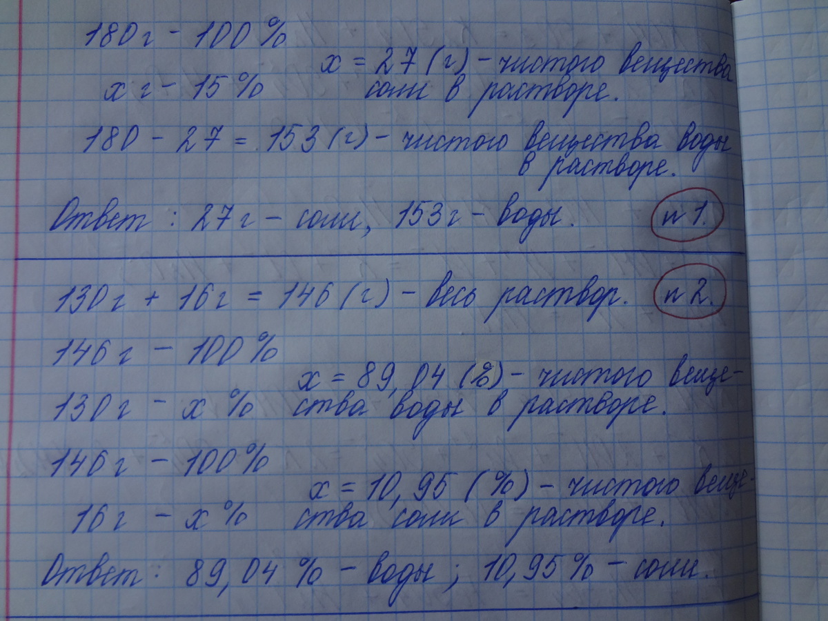 1)Сколько соли и воды необходимо взять для приготовления 180 г. раствора,массовой доли вещества в котором=15%