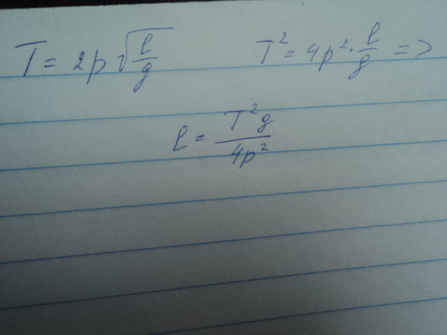 отсюда l=(gT^2)/4p^2