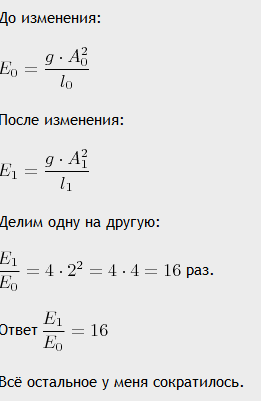 во сколько раз изменится полная механическая энергия колеблющегося маятника при уменьшении его длины в 3 раза и увеличении амплитуды колебаний в 2 раза?........РЕШИТЕ ПОЖАЛУЙСТА ПЯМО ЩАС!!!