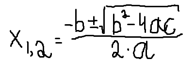 x_{1,2}=frac{-b+/-sqrt{b^2-4ac}}{2a}