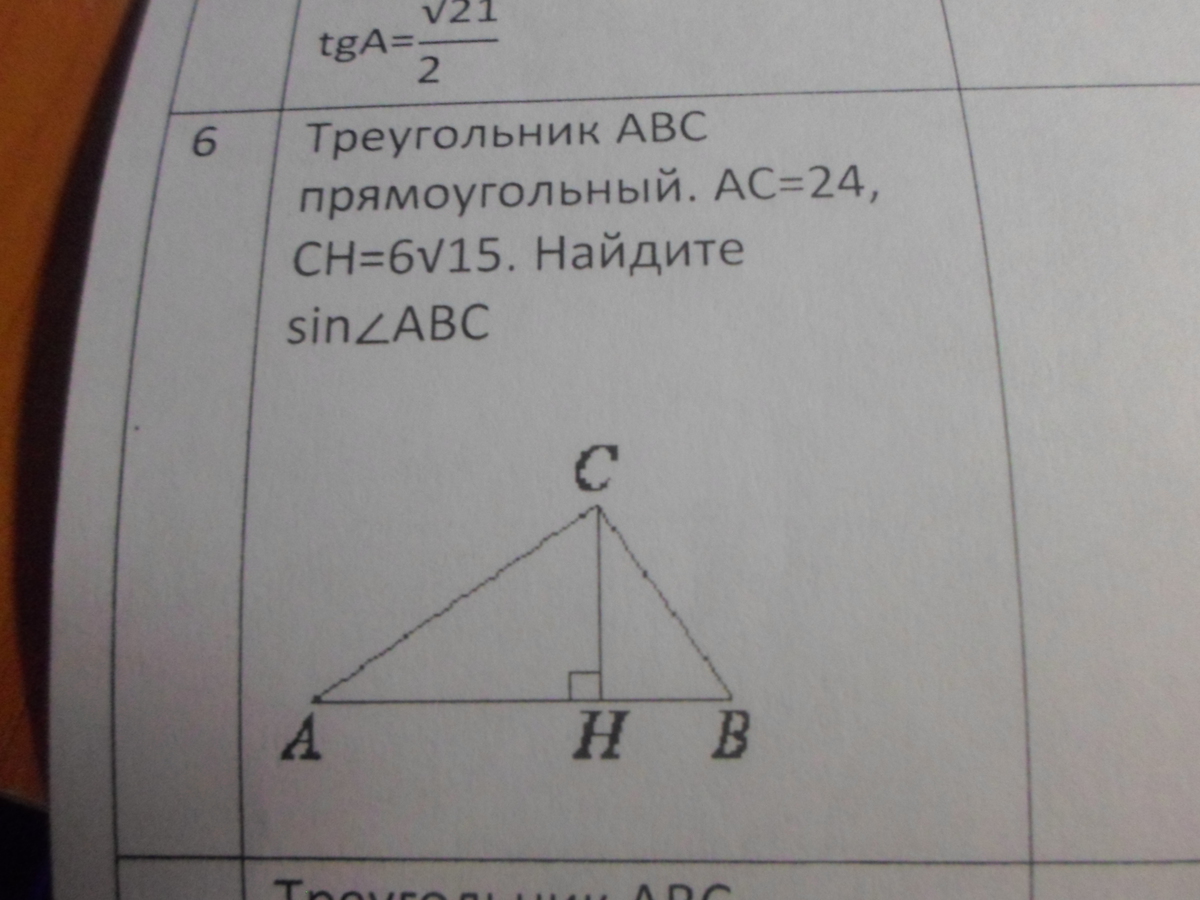 СВ=AC*tgA=6*√21/2 = 3√21