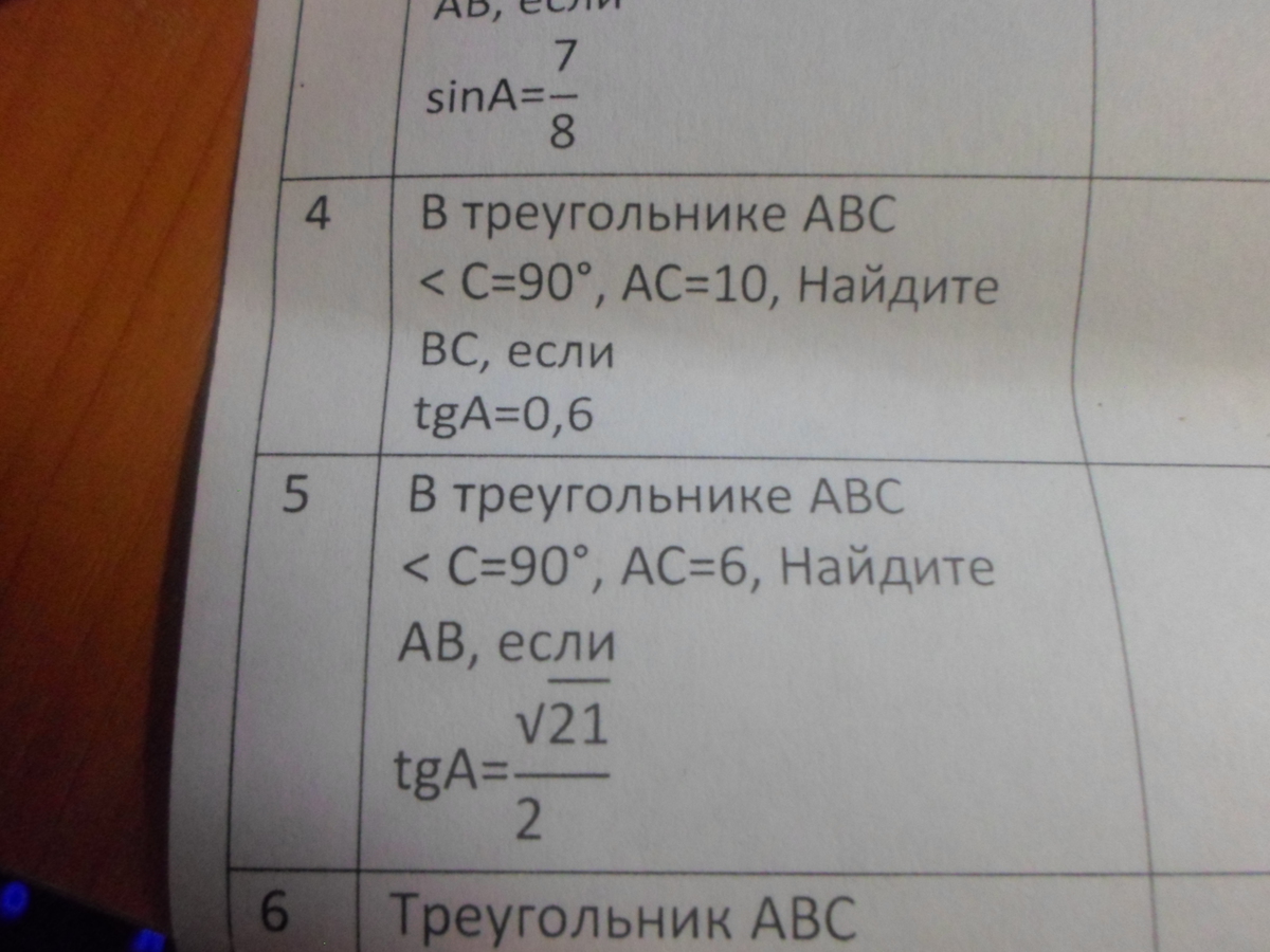 4. tg A = CB / AC