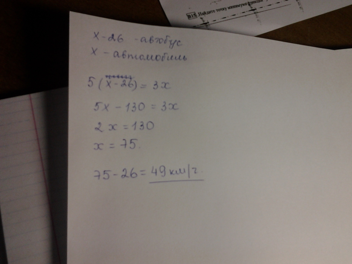 скорость автобуса на 26 кмч меньше скорости легкового автомобиля. Автобус за 5 часов проходит такой же путь, как легковой автомобиль за 3 часа Найти скорость автобуса