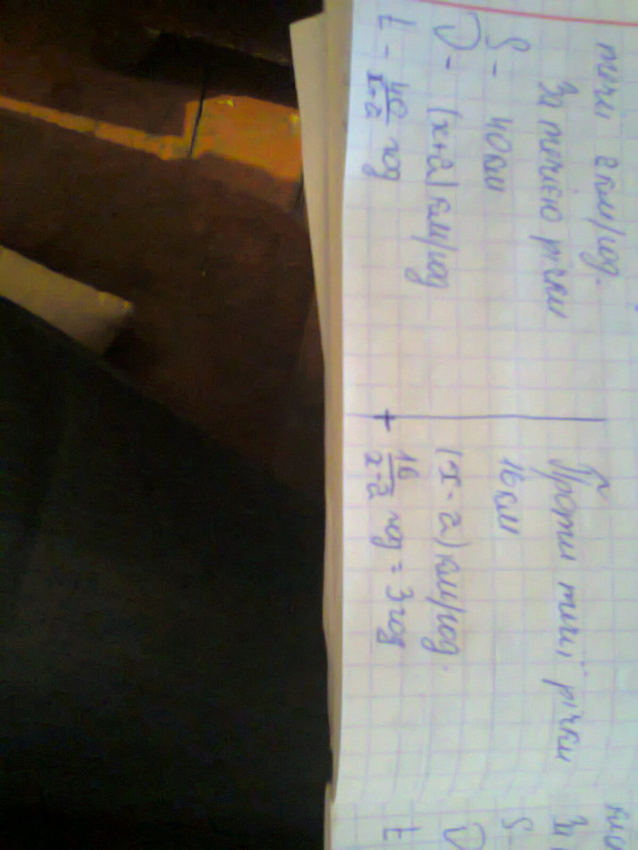 Катер проплив 40 км.,за течією річки і 16 км., проти течії річки затративши на весь шлях 3 години. Яка швидкість катера у стоячій воді,якщо швидкість течії річки 2 км/год?
