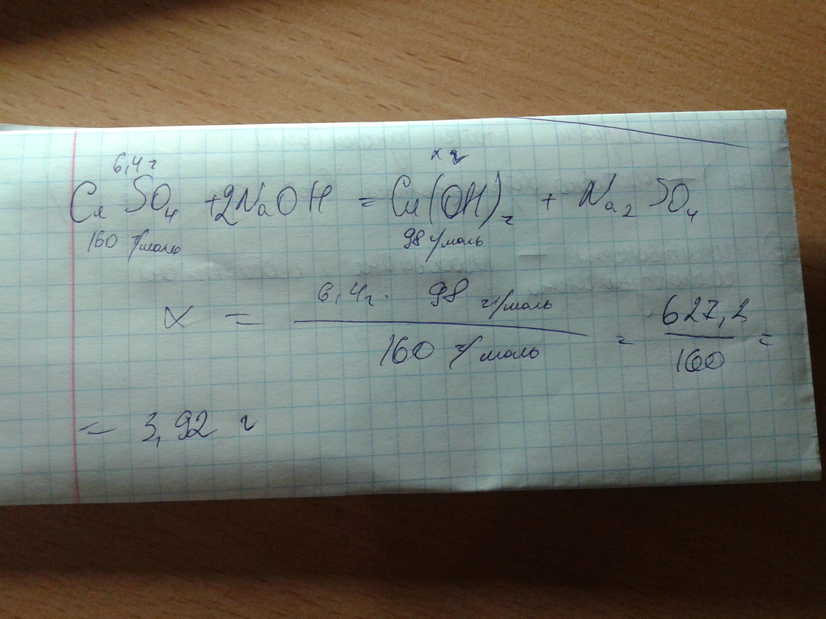вычислить массу Cu(OH)2,который образует в результате действий NaOH на раствор CuSO4 с массой соли 6,4г