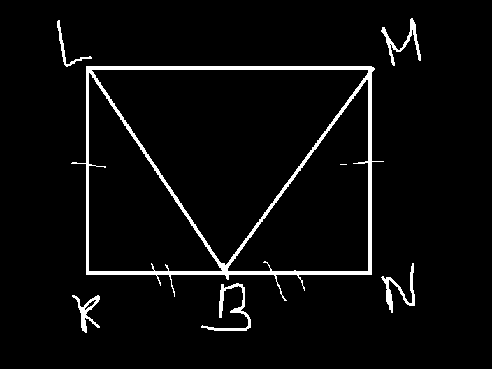 В параллелограмме KLMN точка B - середина стороны KN. Известно, что BL=BM. Докажите, что данный параллелограмм - прямоугольник.