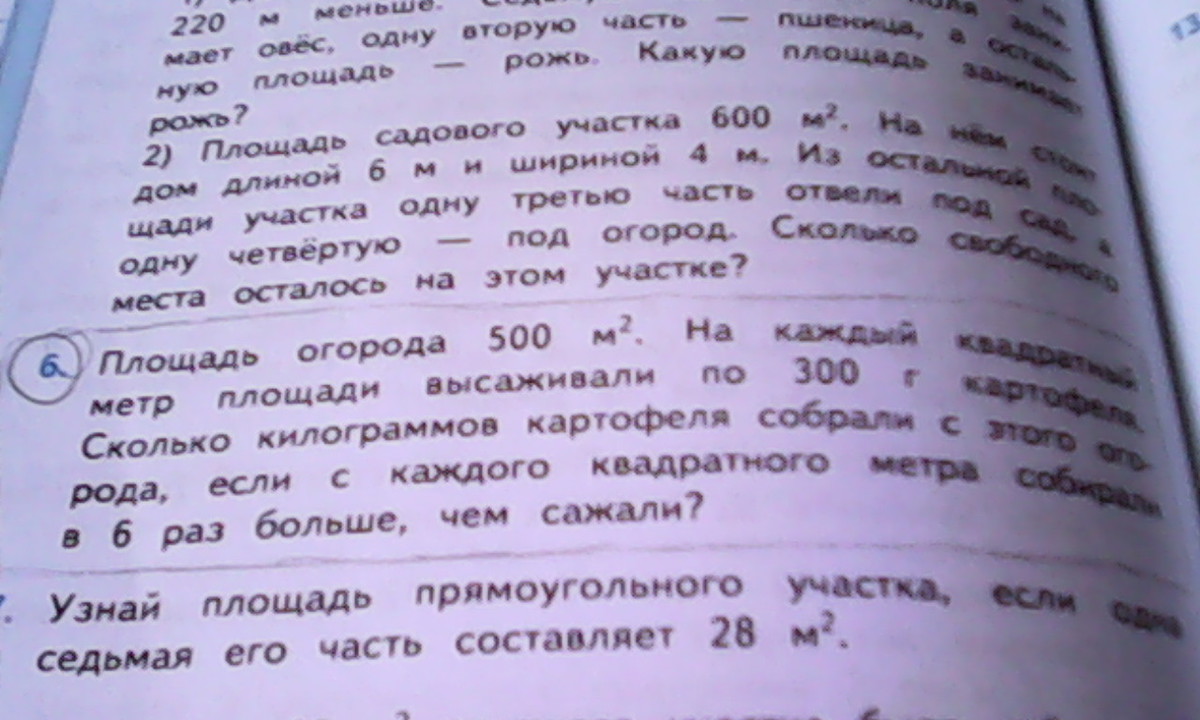 300*6=1800г=1,8кг картофеля собирали с 1 м²