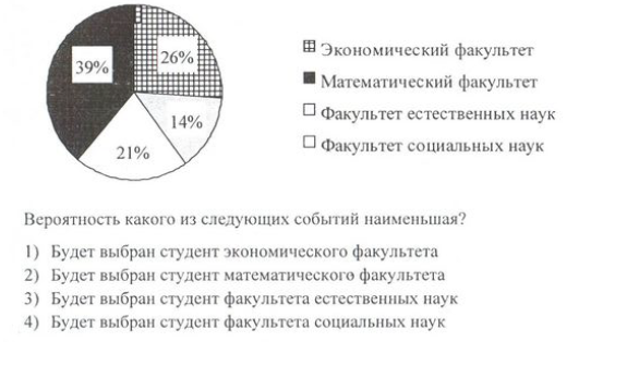 На круговой диаграмме показано распределение (в процентах) студентов университета по факультетам. Для участия в телевикторине случайным образом выбирают одного студента университета.