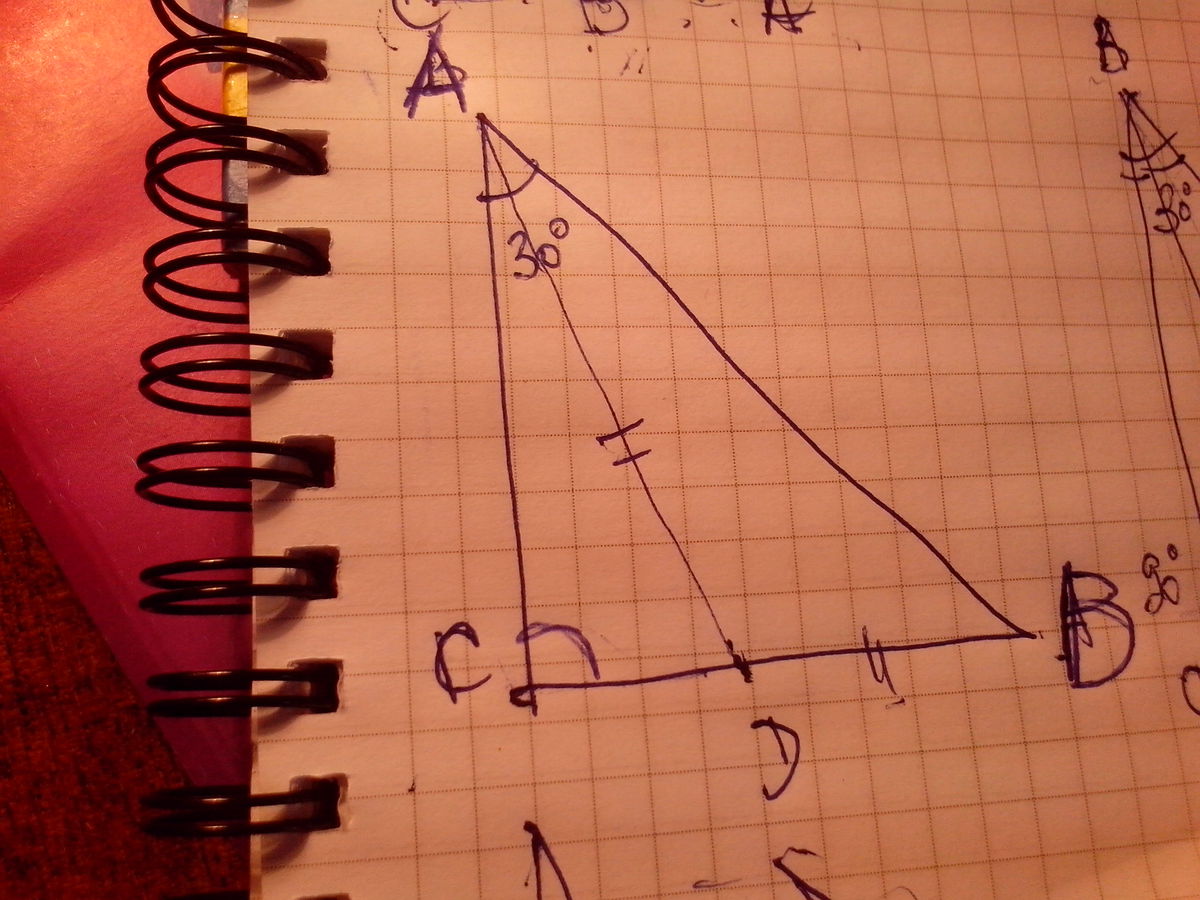 на рисунке ABC-прямоугольный ABC=30градусов AD=BD CD=4 см. Найти DB .
