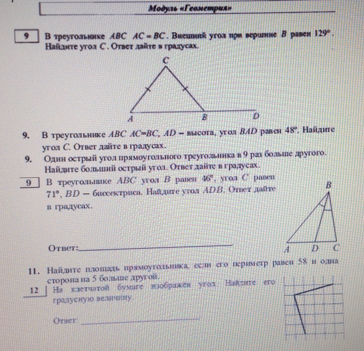 3)Сумма острых углов в прямоугольном треугольнике = 90°. Пусть меньший угол - х. Тогда больший - 9х. Составим и решим уравнение :
