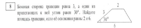 дана трапеция абсд аб = 3 угол а = 30 градусов бс =2 ад=6 найди площадь абсд