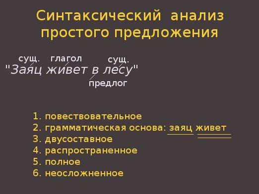 синтаксический разбор предложения -