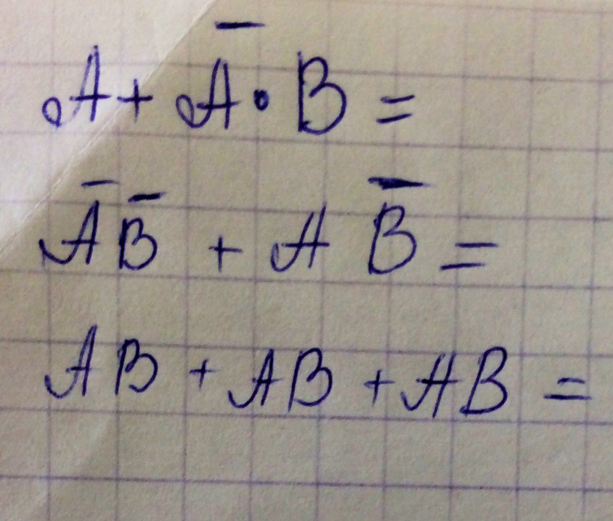 А(В+В)+АВ=АВ+АВ=А(В+В)=АВ