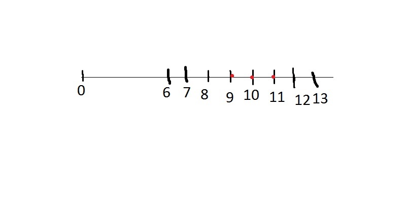Все числа, которые отмечены красным, меньше 12 и больше 8