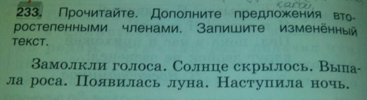 Вдруг замолкли голоса лесных птиц. Уставшее солнце медленно скрылось за лесом. На зеленую траву выпала утренняя роса. На темном небе появилась круглая луна. В лесу наступила летняя ночь.