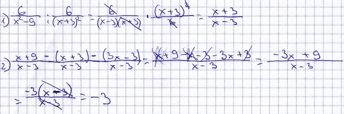 x+9 - 6 ÷ 6 - 3x-3 = x+9-x-3-3x+3 = 9-3x = -3(x-3) = -3