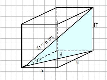 Высота призмы H = D · sin 30° = 6 · 0.5 = 3 (cм)