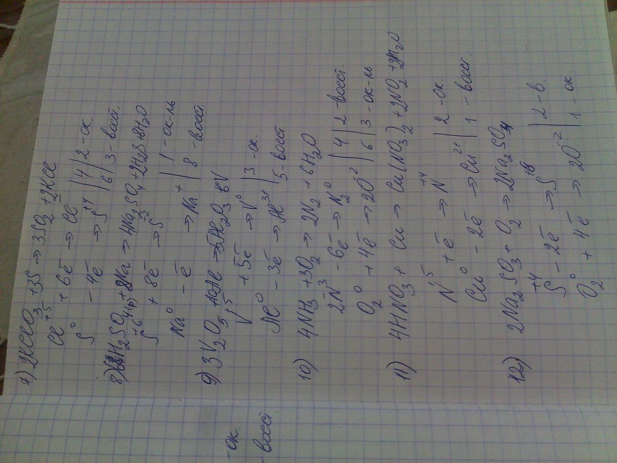 Окислительно-восст реакции (схемы эл,баланса) NH3 + O2 —> N2 + H2O HNO3 + Cu —> Cu(NO3)2 + NO2 + H2O Na2SO3+ O2 —> Na2SO3 Zn + H2SO3 —> ZnSO3 + S + H2O KNO3 —> KNO2 + O2 Fe(OH)2 + O2 + H2O —> Fe(OH)3 NO2 + NaOH —> NaNO3 + NaNO2 + H2O HNO3 —> NO2 + O2 + H2O Cl2 + KOH —> KClO3 + KCl + H2O HJ + HNO3 —> J2 + NO + H2O KClO3 + P —> P2O5 + KCl CuS + O2 —> CuO + SO2 Fe2O3 + H2 —> Fe + H2O