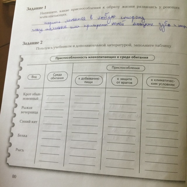 1.Крот: среда обитания - почвенная; приспособления: к добыванию пищи-обоняние (чуткий нос) и мощные когти, к защите от врагов-врагов почти нет, к климату- короткая шерстка, редуцированое зрение.