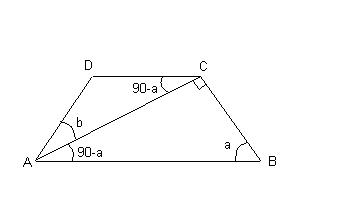 AB = 20, CD = 12, ACB = 90, ABC = DAB = a, BC = AD = AB*cos a, AC = d = AB*sin a