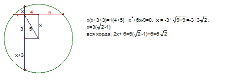 применена теорема Пифагора, свойство отрезков пересекающихся хорд, свойство взаимно перпендикулярных хорд